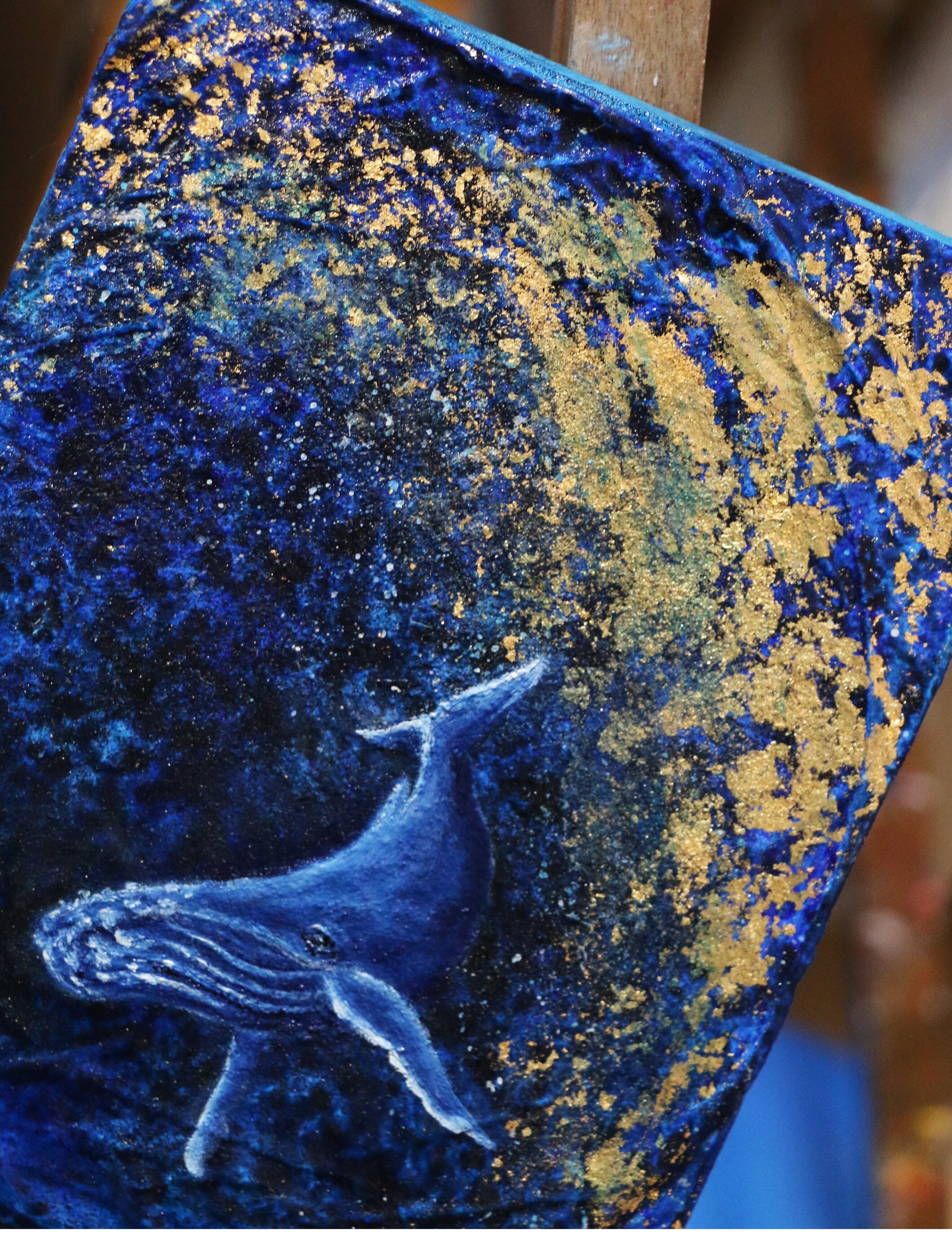 【額装込】輝くしぶきをあげる(油彩画・ザトウクジラ)※価格は額装込です