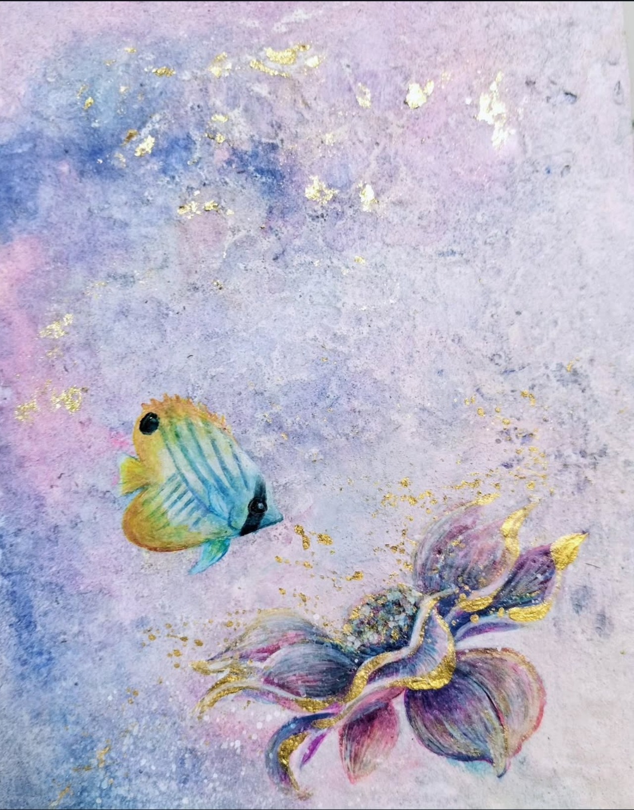 アネモネと、トゲチョウチョウウオを組み合わせた作品です。