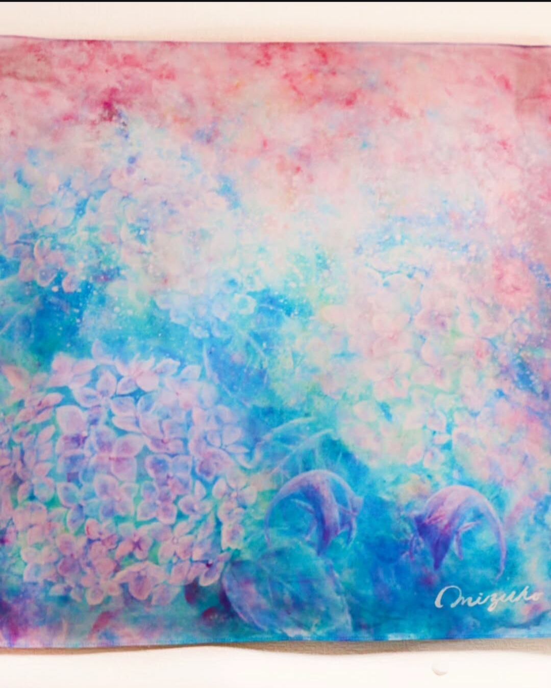 紫陽花とツノダシを描いた絵画をそのままハンカチにしました。