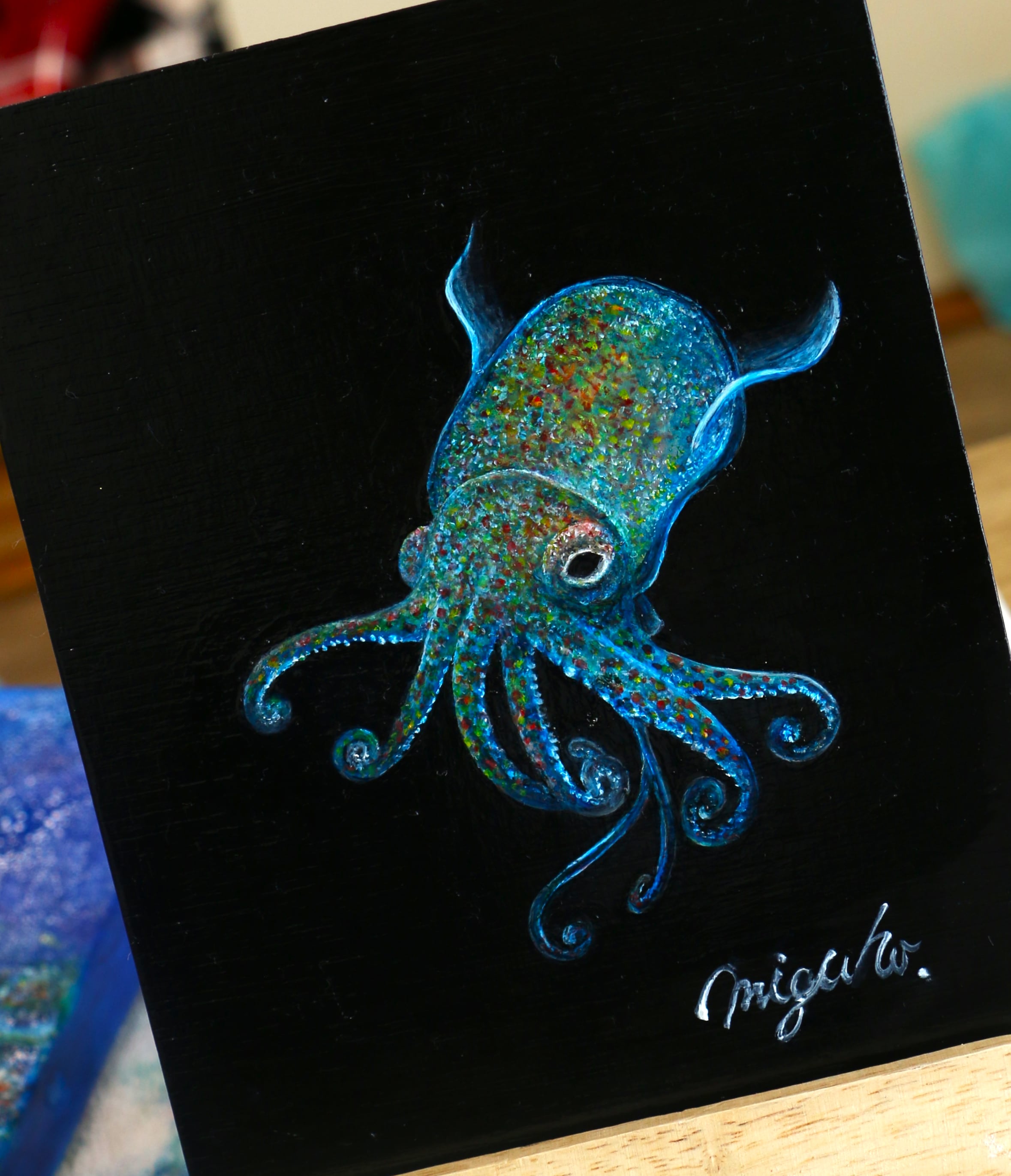 特に吸盤の質感や、脚先の透明感にこだわって描き込みました。