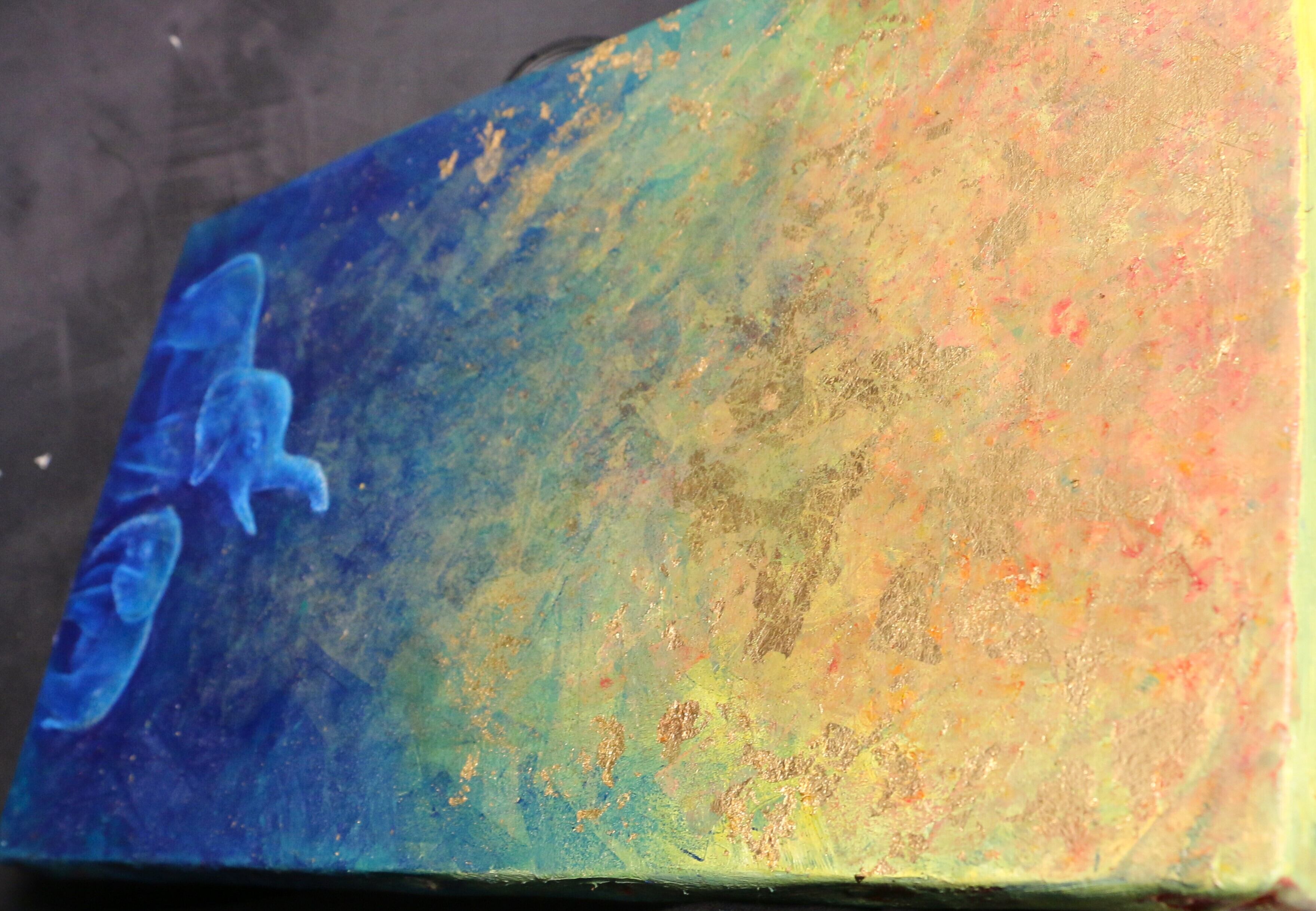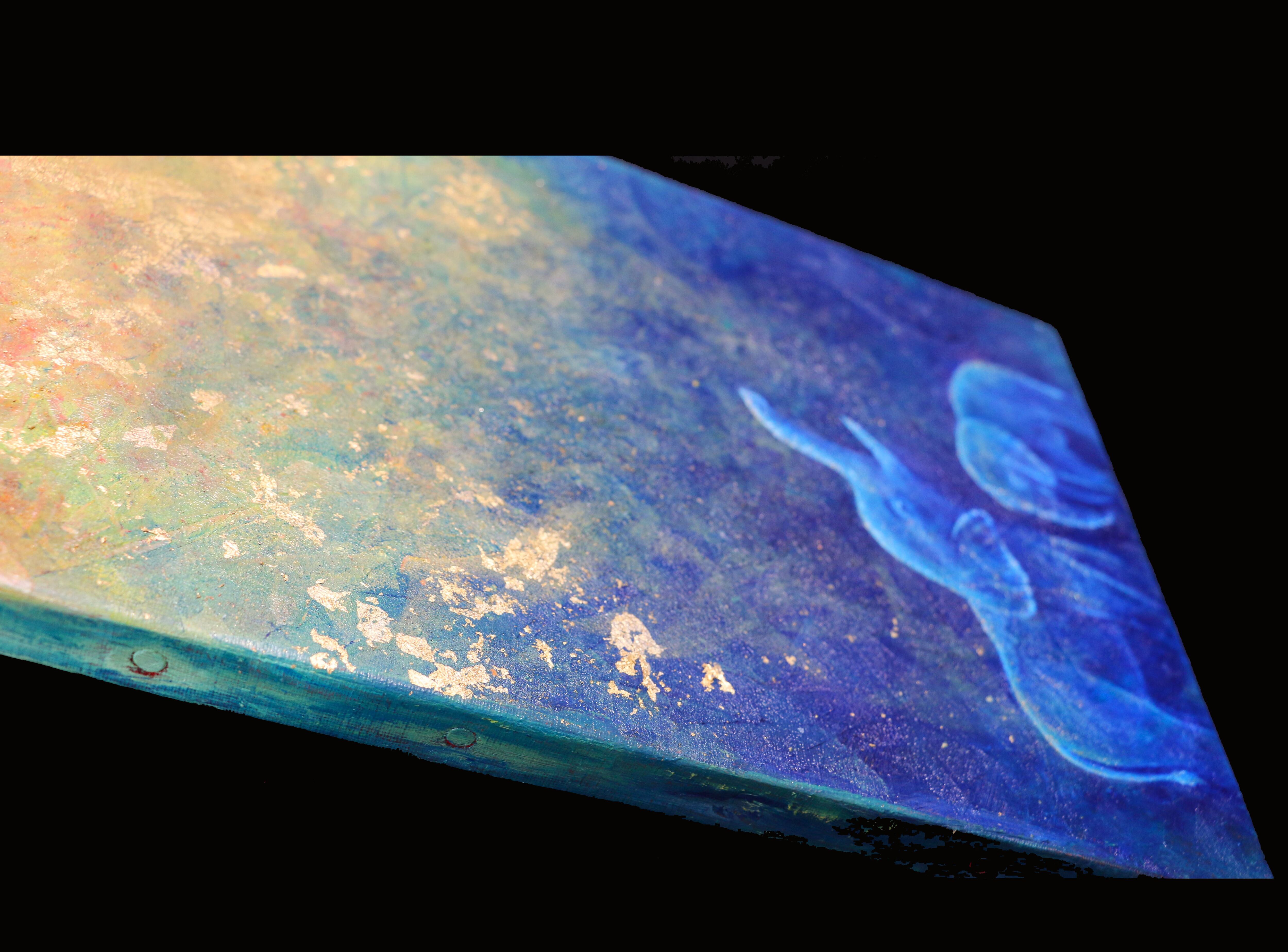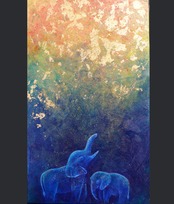 油絵具と洋金箔を組み合わせて、アフリカゾウの親子を描きました。